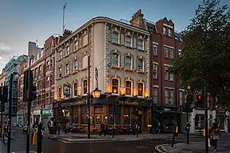 The Champion is a 19th-century public house in Wells Street in the Fitzrovia area of the City of Westminster, London. It is notable for the presence of stained glass windows and a snob screen, a Victorian feature preserved to the present day in only a few pubs.[2][3][4]