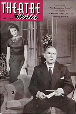 The Complaisant Lover was first produced on 18 June 1959 by John Gielgud at the Globe Theatre London, where it ran for almost a year.[2] The cast included; Ralph Richardson as Victor Rhodes, Paul Scofield as Clive Root and Phyllis Calvert as Mary Rhodes.[3]