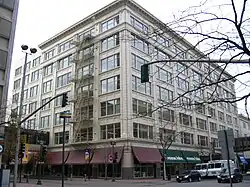 The Crescent, originally the Spokane Dry Goods Company, was Spokane's leading department store for decades. The original Crescent was located on West Riverside Avenue next to the Spokesman-Review Building and opened for business on August 5, 1889, the day after the Great Fire destroyed most of downtown Spokane. As the town’s only remaining dry goods store, its entire stock sold out on the first day of business. Owners Robert B. Paterson and James M. Comstock supported the post-fire effort and did not raise prices in order to take advantage of the disaster, which began the tradition, “be fair to everyone.” Construction of the Crescent building, designed by noted Spokane architect Loren L. Rand, began in 1917 and continued to 1919. Originally five stories in height, the building was later expanded to seven. In 1949 the Crescent purchased the Alexander Building, adjacent to the south, so that it extended half a city block. The final expansion was made in 1973 to include the NW corner of the block.