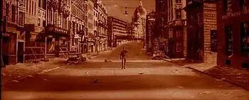In the final scenes, the release for the American market adds church bells, which were absent in the British version.[10][11][12] In his commentary track for the 2001 Anchor Bay DVD release, director Val Guest said the sound of church bells in the American version had been added by distributor Universal, to suggest that the emergency detonation had succeeded and Earth had been saved. Guest speculated that the bells motif had been inspired by the film The War of the Worlds (1953), which ends with the joyous ringing of church bells after the emergency (and a nuclear explosion), but Guest maintained his intention was to always have an ambiguous ending.[13]