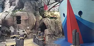 - A large (indoor) man-made cave, with various rock/sediment exhibits built-in and an earthquake simulator.