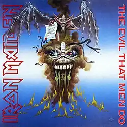 "The Evil That Men Do" is a song by the English heavy metal band Iron Maiden. It is the band's seventeenth single and the second from their seventh studio album, Seventh Son of a Seventh Son (1988). The single debuted at number six in the UK charts and quickly rose to number five. The single's B-sides are re-recordings of "Prowler" and "Charlotte the Harlot" which appear as tracks number one and seven/eight respectively on the band's debut album Iron Maiden.