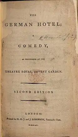 The German Hotel is a 1790 comedy play by the British writer Thomas Holcroft.[2]
