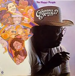 The Happy People is a live album by the Cannonball Adderley Quintet, a band led by jazz saxophonist Julian "Cannonball" Adderley. It was recorded in 1970 in New York City[2] and released in 1972 through Capitol Records. It features contributions from the quintet: Cannonball Adderley on saxophone, George Duke on piano, Walter Booker on string bass, Roy McCurdy on drums and Nat Adderley on cornet, with guest appearances from Airto Moreira, Olga James, Flora Purim, David T. Walker, Chuck Rainey, King Errisson and Mayuto Correa.