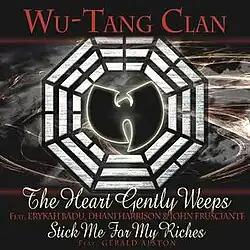 "The Heart Gently Weeps" is the first single from the 2007 album 8 Diagrams by the Wu-Tang Clan. The song interpolates the Beatles' song "While My Guitar Gently Weeps". It features guest appearances from three other musicians: R&B singer Erykah Badu sings the song's chorus; Dhani Harrison, son of Beatle lead guitarist and vocalist George, plays acoustic guitar; and John Frusciante of the Red Hot Chili Peppers is featured on lead guitar. This song was made using a cover version of the George Harrison song played by the blues guitarist Jimmy Ponder.