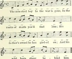 "The Minstrel Boy" is an Irish song written by Irish poet Thomas Moore (1779–1852) and published as part of his Irish Melodies.[2] Moore himself came to be nicknamed "The Minstrel Boy",[3] and indeed it is the title of Leonard Strong's 1937 biography of Moore.