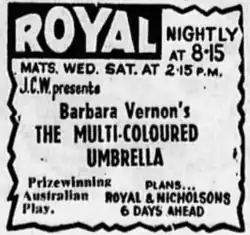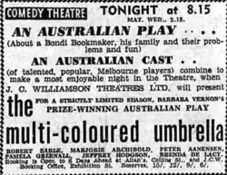 - ^ "'Multi Coloured Umbrella' Opens at Royal". Sydney Morning Herald. 11 November 1957. p. 5.