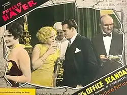 The Office Scandal is a 1929 American sound part-talkie drama film directed by Paul L. Stein and starring Phyllis Haver, Raymond Hatton and Margaret Livingston.[1] In addition to sequences with audible dialogue or talking sequences, the film features a synchronized musical score and sound effects along with English intertitles. The soundtrack was recorded using the RCA Photophone sound-on-film system.