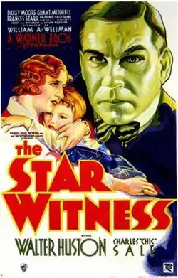 The Star Witness is a 1931 American pre-Code crime drama film produced and distributed by Warner Bros. and directed by William A. Wellman. The film stars Walter Huston, Frances Starr, Grant Mitchell, and Chic Sale. The Star Witness was nominated for an Academy Award at the 5th Academy Awards for Best Story.[1][2]