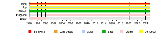 - Damrongsith "Pingpong" Srinak (ดำรงสิทธิ์ ศรีนาค) – drums