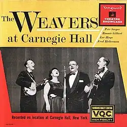 The Weavers at Carnegie Hall (1957) is the second album by the Weavers. The concert was recorded live at Carnegie Hall in New York City on Christmas Eve 1955. At the time the concert was a comeback for the group following the inclusion of the group on the entertainment industry blacklist. The album peaked at number 24 on the Billboard Top 200 in 1961.