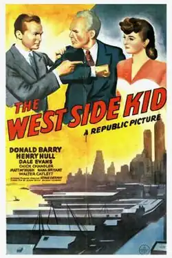 The West Side Kid is a 1943 American crime film directed by George Sherman and starring Don "Red" Barry, Henry Hull, Dale Evans, Chick Chandler, Matt McHugh and Nana Bryant. Written by Albert Beich and Anthony Coldeway, the film was released on August 23, 1943, by Republic Pictures.[1][2][3]