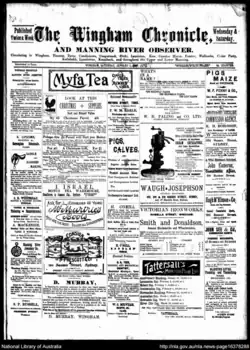 - ^ "State Library of New South Wales catalogue". Wingham chronicle and Manning River observer. State Library of New South Wales. 27 November 2014. Retrieved 27 November 2014.