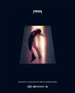 In June 2013, West's sixth studio album Yeezus[2] was released to commercial success, reaching number one in 31 countries. Co-producer Mike Dean subsequently confirmed that a tour would be held for the album with him as a backing performer.[3] On September 6, 2013, West announced the Yeezus Tour with a promotional poster showing the album's title and him dangling backwards using his arms.[4] West shared 23 dates and the accompaniment of an opening act from fellow rapper Kendrick Lamar, who was scheduled for all but five dates that had a "special guest" set instead.[5] This marked Lamar's first live appearance with a full backing band, although his label Top Dawg Entertainment wanted him to focus on recording rather than joining the tour.[6][7] West's team insisted on his inclusion however, which the label allowed once a studio bus was secured for Lamar to record while touring. In spite of expectations from journalists that the rappers would have engaged in communal bonding, they spent little time around each other. Lamar mentioned that West desired for him not to seem like "just the opener", impressed with the rapper wanting his opening show to be on the same level as the headlining set.[7] Tickets went on sale the week after West's announcement and tour dates ran from October 19–December 7, 2013, venturing across the United States and also visiting Canada.[4][5][8] Later in September, West announced an additional six dates across North America.[9]