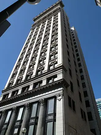 - Machesney Building (1905) (later known as the Benedum-Trees building) The office building includes granite, brick and terra cotta with classical three-story Corinthian columns and an interior lobby ornamented with marble, bronze, and plaster.