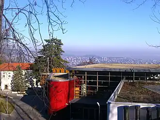 ![]() Thomas Mann Gymnasium, Budapest, seen from the south. The red building houses the library, the south entrance is to the right. The building to the left is the first school building, currently housing the primary school. | |