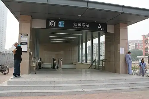 Tiedonglu Station (Chinese: 铁东路站), literally Tiedong Road Station in English, is a station of Line 3 of the Tianjin Metro. It started operations on 1 October 2012.[1]
