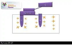The airport features Runway 09/27, measuring 3,000 metres (9,800 ft), a parallel taxiway, and an apron with 27 parking positions—12 contact stands and 15 remote positions—primarily for narrow-body commercial aircraft, located around the two terminal pier buildings. Adjacent to this area, there is a general aviation apron offering stands for fixed-wing aircraft and helipads for private aviation, as well as hangars and maintenance facilities. The airport's control tower is one of the tallest in Mexico.[27]