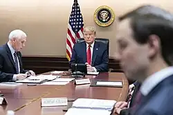 On January 29, the U.S. formally announced a White House Coronavirus Task Force, including senior officials such as acting White House Chief of Staff Mick Mulvaney and others at HHS, CDC, and the U.S. State Department. President Trump attended the meeting on January 29, and tweeted related photos.[43] However, the scope was limited initially to the logistics of keeping travelers out of the U.S. from China, and evacuating U.S. citizens. They did not initially focus on testing or supplies in the U.S.[4]