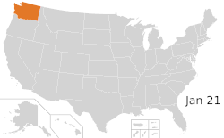 The first recorded U.S. case of the new virus was also reported on January 20, in a 35-year-old American citizen traveling from Wuhan, China, to his home in Washington state.[21][22]