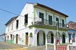 Tlacotalpan reached its height as a port city in the 19th century. At the beginning of this century, French, German and Italian immigrants came to the area to plant and weave cotton, to be sold in English markets.[2] Starting in 1821, Tlacotalpan experienced economic grown as a port for products from Oaxaca and Puebla going to Veracruz and abroad to New Orleans, Havana and Bordeaux. By 1855 it was home to eighteen steamships and a large sailing ship which transported timber, tobacco, cotton, grain, sugar, brandy, leather, salted meat, crocodiles, heron feathers, furniture and soap.[2] In 1825 one of Mexico's first nautical colleges was opened, founded by Guadalupe Victoria. In 1847, Tlacotalpan was officially declared a town in recognition of its participation in the defense against U.S. forces in the Mexican–American War. In 1864 the town was taken by French forces under Marechal one day after taking Alvarado. Later that same year, Republican forces under Alejandro García retook the area. In 1865 it was declared a city and provisional capital for its resistance against the French. In 1879, Miguel Z. Cházaro founded Veracruz's third preparatory school. Here Porfirio Díaz organized an uprising against the government of Sebastián Lerdo de Tejada, which led to a name change of Tlacotalpan de Porfirio Díaz in 1896. This was changed to the current version after the Mexican Revolution.[5] At the beginning of the 20th century, the town had eight schools, three hotels, nine factories and 100 single-storied houses.[2]