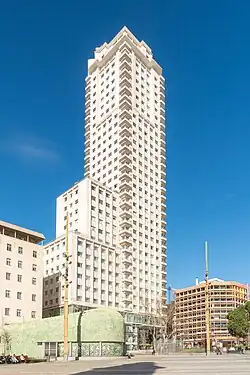 It is situated on the Plaza de España, being a symbolic building for the plaza and the city. It holds offices and apartments. It was the highest office building in Western Europe until 1967, when it was surpassed by the 150-metre high South Tower in Brussels. The Tower appeared in numerous Spanish movies released in the 1960s.