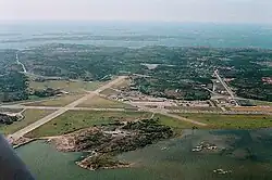 The airport[2] had been the site of a mishap on 23 December 1967 when a Douglas DC-6B operated by Sterling Airways carrying 55 passengers en route from Stockholm landed 3000 feet beyond the landing threshold.[4]
