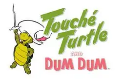 Touché Turtle (voiced by Bill Thompson, known for voicing Droopy) and his dim-witted sheepdog sidekick Dum Dum (voiced by Alan Reed, known for voicing Fred Flintstone) were a pair of heroic fencers who battle villains and heroically save kings, queens, and others in distress.[2] Touché was the brave (if not entirely competent) leader brandishing his trusty sword and exclaiming his catchphrase "Touché away!"[3] He wore a plumed musketeer-type hat. Dum Dum was more of a simple-minded follower in a smaller plumed hat and a scarf.