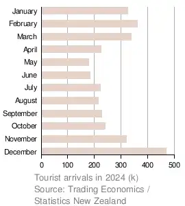 - ^ "New Zealand: International tourist trips". Our World In Data. 17 August 2024.