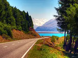 The vast majority of international tourist arrivals to New Zealand come through Auckland Airport, which handled 11.5 million international passengers in 2019.[5] Two per cent of visitors arrived by sea as of 2009.[6] Many international tourists spend time in Auckland, Christchurch, Queenstown, Rotorua, and Wellington.[7] Other high-profile destinations include the Bay of Islands, the Waitomo Caves, Aoraki / Mount Cook, and Milford Sound. Many tourists travel considerable distances through the country during their stays, typically using coach lines or hired cars. Though some destinations have seasonal specialities (for winter sports, for example), New Zealand's southern-hemisphere location offers attractions for off-peak northern-hemisphere tourists chasing or avoiding certain seasons. In June 2018 the New Zealand government announced the imposition of a "tourist tax" of around NZ$25 to NZ$35 for international visitors, excluding Australians, many Pacific islanders, and young children. It planned to implement this taxation in 2019 through a newly proposed electronic travel-registration process.[8][9]