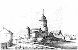 ![]() Vyborg Castle with Tower of St. Olav in the city map of Vyborg (1642) | |
