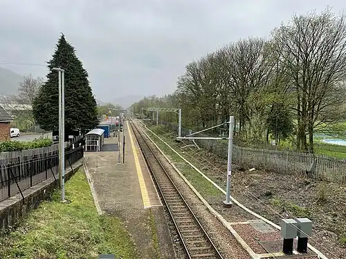 The station is on the western side of the town, on the road to the village of Cwmparc. There is a single platform, a shelter with seating and help point, and a free car park.[7]