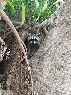 The Tres Marias raccoon (Procyon lotor insularis) is a subspecies of the common raccoon endemic to the two main islands of the Islas Marías, an archipelago off the western coast of the Mexican state of Nayarit.[1] Although sometimes historically considered a separate species, the Tres Marias raccoon is now regarded to be a subspecies of the common raccoon, introduced to the Islas Marías in the recent past. It is slightly larger than the common raccoon and has a distinctive angular skull. There are fewer than 250 mature individuals on the islands, where they are hunted by islanders; the International Union for Conservation of Nature has designated the species as endangered.