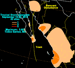 ![]() Tropical Storm Georgette near landfall over Baja California on September 21 | |