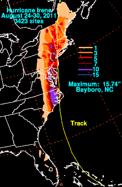 - ^ Sterling, Steven. "N.J. rainfall map – storm totals from Hurricane Irene". The Star-Ledger. NJ.com. Archived from the original on November 23, 2011. Retrieved August 29, 2011.
