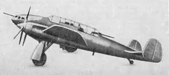The Polikarpov VIT-2 (Vozdooshny Istrebitel' Tahnkov—Flying Tank Destroyer) was a Soviet twin-engined ground attack aircraft developed before World War II. A single prototype was built in 1938 for evaluation purposes. Although a promising design it was recommended that it be introduced into production as a high-speed dive bomber with a reduced armament to increase its speed.