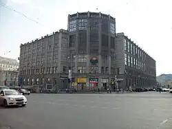 Between the Russian Revolution of 1917 and the rise of Stalinist architecture in mid-1930s, the street acquired three modernist buildings - constructivist Izvestia Building by Grigory Barkhin (1925–1927, Pushkin Square), Central Telegraph Building (1927-29, 7 Tverskaya), a modernist masterpiece by Ivan Rerberg, and a stern "black cube" of the Lenin Institute in Tverskaya Square (1926) by Stepan Chernyshyov. The street was renamed in 1932 for Maxim Gorky, the Russian writer and revolutionary admired by both Vladimir Lenin and Josef Stalin.[4]