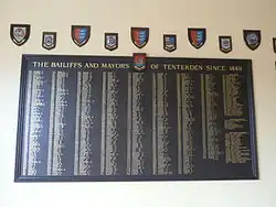 The Tilden families of America descend from John Tilden, a clothier of Benenden, born around 1400. His descendant, Nathaniel Tilden,[4] sailed with his family (his wife Lydia (nee Huckstep), seven children and seven servants) in March 1634 on the Hercules, from Sandwich, Kent to Massachusetts Bay Colony. Nathaniel Tilden, the first name on the passenger list of the Hercules, had been mayor of Tenterden in 1622 and his immediate family had held similarly official roles in Tenterden and the surrounding community. Nathaniel Tilden was chosen ruling elder of the first church of Scituate, Massachusetts within a year after his arrival. His name is recorded in the first conveyance of land recorded in Scituate in 1634: "of all that land which I have of Goodman Byrd lying within the fence at the north end of the third cliffe, unto the land of Nathaniel Tilden."
