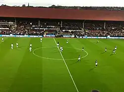 The plans for redevelopment of the main stand were rekindled in December 2015, when Hearts owner Ann Budge said work on the new stand would commence as soon as possible.[22] Hearts submitted plans in March 2016 to Edinburgh Council, proposing a new 7000-seat stand.[23] The plans also include a nursery, alongside space for a club shop, ticket office and admin office. Construction began during the latter part of the 2016–17 season.[24] In April, Hearts announced their intention to restore the original name of Tynecastle Park when the new stand is opened.[8] The project was initially expected to be completed by September 2017,[25] but construction delays meant that four home fixtures had to be moved to Murrayfield.[26] Tynecastle re-opened on 19 November, for a league game against Partick Thistle.[26][27]