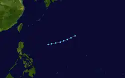 A tropical depression formed 1,050 kilometres (650 mi) east-southeast of Manila on July 4. Moving west-northwest, the system crossed the central Philippines on July 5, moving into the South China Sea on July 6. Moving more towards the north on July 7, the depression moved inland into southern China east of Hong Kong on July 8. In Hong Kong, winds gusted to 47 knots (87 km/h) at Tate's Cairn, where 114.1 millimetres (4.49 in) fell.[1] While Hong Kong considered it a tropical depression throughout its life cycle, PAGASA named the system and considered it a tropical storm.[7]