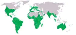 The barn owl is the most widespread landbird species in the world, occurring on every continent except Antarctica.[20] Its range includes all of Europe (except Fennoscandia and Malta), most of Africa apart from the Sahara, the Indian subcontinent, Southeast Asia, Australia, many Pacific Islands, and North-, Central-, and South America.[20] In general, it is considered to be sedentary, and, indeed, many individuals, having taken up residence in a particular location, remain there even when better nearby foraging areas are available. In the British Isles, the young seem largely to disperse along river corridors, and the distance travelled from their natal site averages about 9 km (5.6 mi).[21]