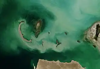 The Tyuleniy Archipelago (Kazakh: Түлен аралдары Tülen araldary, Russian: Тюленьи острова), is an island group in the north-eastern Caspian Sea off the Mangyshlak Bay west of the Mangyshlak Peninsula and about 13 kilometres (8.1 miles) northwest of the Tupkaragan Peninsula, 27 kilometres (17 miles) north of Bautino. Perhaps the most substantial group of islands in the Caspian, they were first accurately mapped by Fedor Ivanovich Soimonov who led the 1719 Caspian Expedition, studying the Caspian Sea from 1719 to 1727.[1]