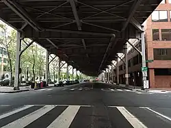 U.S. Route 29 (US 29) enters Washington, D.C., via the Key Bridge from Arlington County, Virginia, and exits at Silver Spring, Maryland. It predominantly follows city surface streets, although the portion of the route from the Key Bridge east to 26th Street Northwest is an elevated highway better known as the Whitehurst Freeway. The freeway, called the city's most ridiculed bridge in 1989, has survived several proposals for its demolition.[2]
