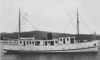 As late as 1947, Brant remained in use in the FWS fleet as a base of operations for surveying streams; in this role, she served as the mother ship for small FWS skiffs powered by outboard motors which operated in shallow water both to identify obstructions in streams that could interfere with the spawning journeys of salmon and to transport FWS personnel to and from shore.[2] In the 1950s her original engine was replaced by a new 240-horsepower (180 kW) Union diesel engine manufactured at Oakland, California, in 1951 which on average consumed 800 US gallons (3,000 L; 670 imp gal) of diesel fuel a day, and her fuel tanks had a capacity of 4,000 US gallons (15,000 L; 3,300 imp gal).[2] By that time, her main engine and propeller controls were located in her engine room, as were fire and bilge pumps and a battery bank.[2]