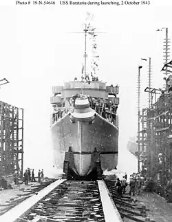 Barataria was laid down on 19 April 1943 at Houghton, Washington, by the Lake Washington Shipyard. She was launched on 2 October 1943, sponsored by Mrs. L. J. Stetcher, and commissioned at her builder's yard on 13 August 1944.