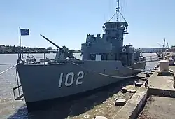 USS LCS(L)(3)-102 is an LCS(L)(3)-1 Class Landing Craft Support ship built for the United States Navy during World War II. The vessel was completed near the end of the war and saw brief service during the Battle of Okinawa. After the war, LCS(L)(3)-102 served in China before being decommissioned in 1946 and then transferred to Japan in mid-1953. Serving under the name JDS Himawari, the vessel remained in Japan until mid-1966 when she was transferred to Thailand, becoming the HTMS Nakha. In 2007, after being retired, the ship was returned to the United States to become a museum ship.