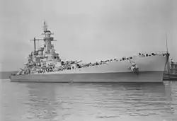 After completing her refit in September, Washington conducted sea trials, followed by a short period of training while based in San Pedro, Los Angeles. She then got underway for the Panama Canal and on 6 October joined TG 11.6 on the way, thereafter passing through the canal and steaming north to the Philadelphia Naval Shipyard. She arrived there on 17 October and took part in Navy Day celebrations on 27 October. Slated to take part in Operation Magic Carpet, the sea-lift operation to bring American service members home, Washington went into the shipyard in Philadelphia to be modified to carry additional personnel. Additional space was provided by substantially reducing the crew, to 84 officers and 835 enlisted men; with the war over, the ship's weapons needed no gun crews. The work was completed by 15 November, when she got underway for Britain. She arrived in Southampton on 22 November. Washington embarked a contingent of Army personnel totaling 185 officers and 1,479 enlisted men and then re-crossed the Atlantic to New York, where she was decommissioned on 27 June 1947.[7]