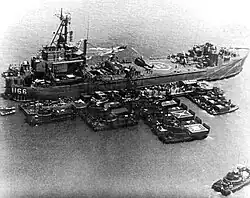 USS Washtenaw County (LST-1166) was a Terrebonne Parish-class tank landing ship in commission in the United States Navy from 1953 to 1973. Named for Washtenaw County, Michigan, she was the only U.S. Navy vessel to bear the name. It is currently derelict. In October 2008, it was reported to be at the southeastern tip of Lord Island on the Columbia River in Rainier, Oregon at 46°07′18″ N 123°00′51″ W next to the Oregon shoreline.[1] It is listed as a derelict vessel by the interagency Derelict Vessel Task Force, and has suffered damage from vandalism and looting between 2005 and 2008. While some had hoped to restore the ship as a museum ship, there is no funding or plan to do so.