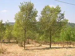 'Arno' has reputedly performed extremely well in trials in northern Italy, even where grown on poor clay soils.[2] The clone was introduced to the UK by Butterfly Conservation in 2007,[1] and to The Netherlands by Noordplant, but is not known elsewhere in Europe, and has not been introduced to North America or Australasia. 'Arno' is no longer in commerce in Italy.