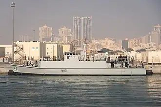 In February 2023, the autonomous minehunting vessel RNMB Harrier arrived in Bahrain to begin trials of autonomous systems in hot weather. The autonomous vessel operated from RFA Cardigan Bay.[15] As of late 2024, Cardigan Bay returned to the UK for refit[16] and acute personnel shortages in the RFA made her return to the Gulf uncertain.[17]